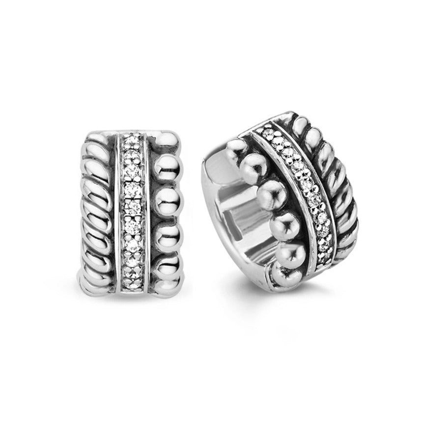 TI SENTO Sterling Silver Multi Row Huggies with Cubic Zirconia