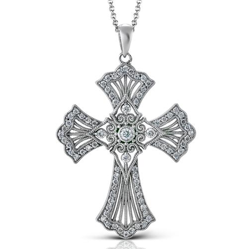 Call For PricingSimon G 18K White Gold Diamond Filigree Cross