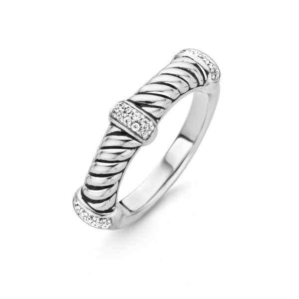 Call For PricingTI SENTO Sterling Silver Ring with a Twist Design and Cubic Zirconia Stations