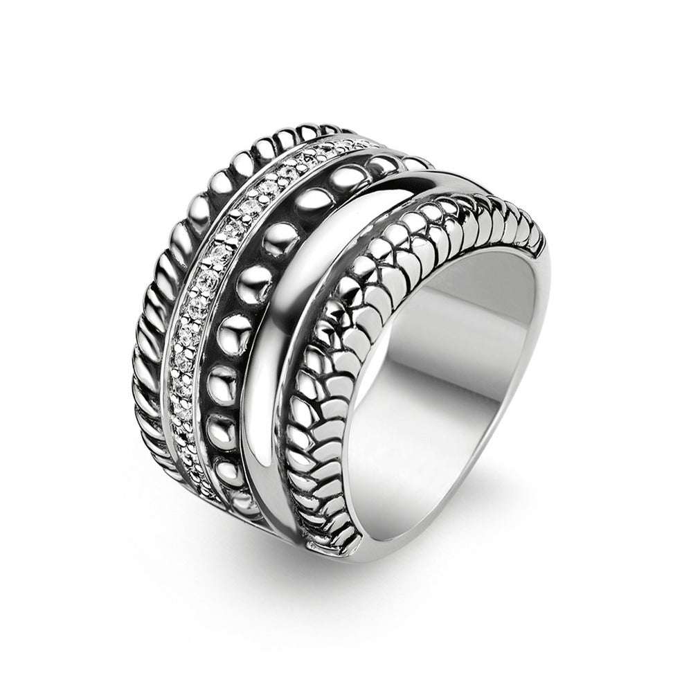 TI SENTO Sterling Silver Weave Band with Cubic Zirconia Center