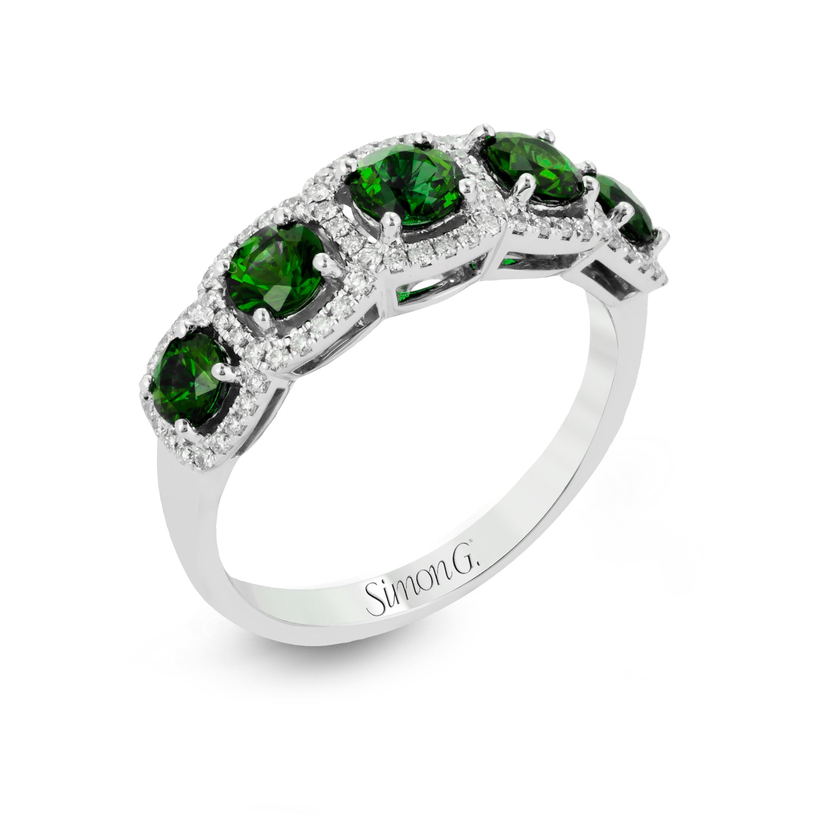 Simon G 18K White Gold Emerald and Diamond Halo Anniversary Band